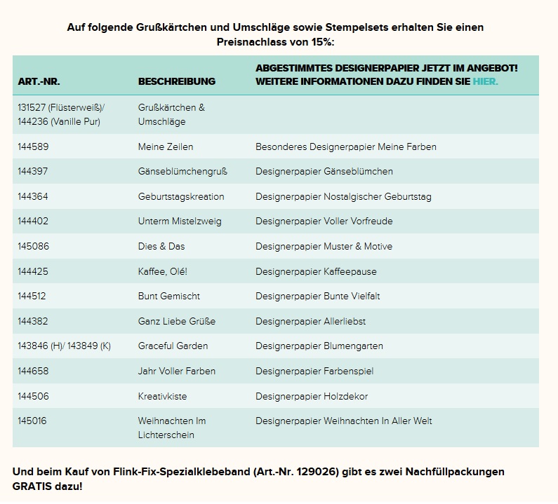AUßERDEM gibt es den ganzen Oktober noch eine Designer-Papieraktion. Das bedeutet, ihr bestellt 3 Designerpapiere, und erhaltet ein viertes Paket eurer Wahl gratis dazu. Klickt auf das Bild und ihr werdet sehen, welche Pakete bei der Aktion gelten.