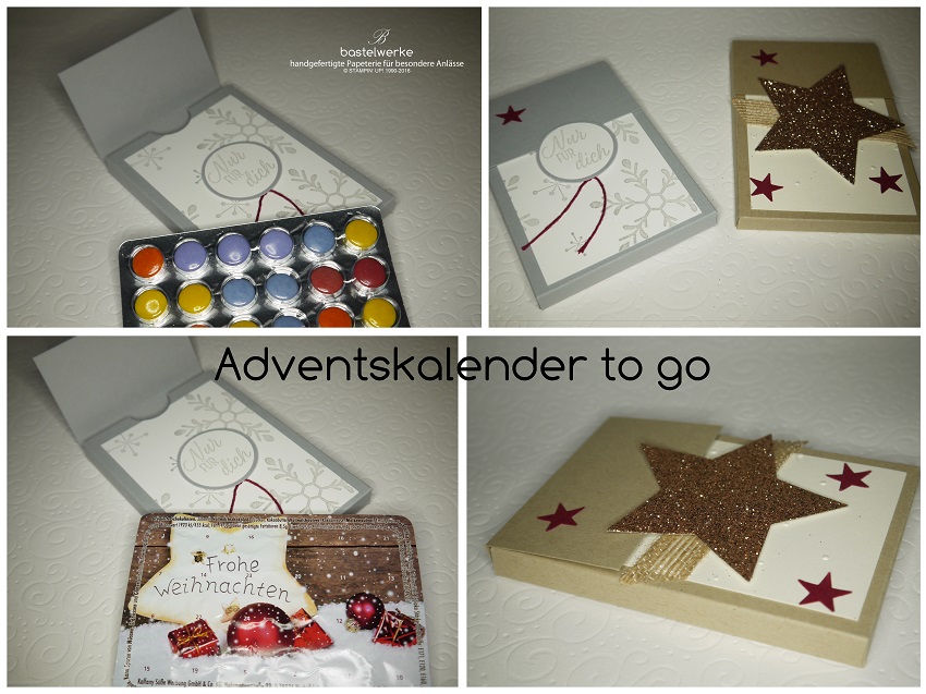 Erhältlich sind die süßen "Adventskalender to go" kommendes Wochenende an meinem Weihnachtsmarkt-Stand in Nidda. Außerdem gibt es sie auch in Luna's Kreativ Eck, ebenfalls in Nidda. Wer nicht länger warten kann, schreibt mir eine Mail an info[at]bastelwerke.de und erhält den Kalender auf dem Postweg.