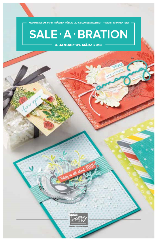Am 3. Januar erscheint der neue Frühling-Sommerkatalog (FSK) und damit beginnt auch wieder die schönste Zeit bei Stampin' UP! die Sale-A-Bration (SAB). Das Cover des FSK und der SAB darf ich euch schon zeigen:
