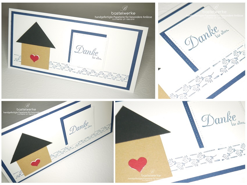 Ich mag diesen flachen Humor und hoffe euch auch ein kleines Lächeln entlocken zu können ;) Heute zeige ich euch eine Karte, die ich als Dankeschön für fleißige Umzugshelfer erstellen durfte. Meine Arbeitkollegin wollte ihren Eltern gerne "Danke für alles" sagen und ist dabei auf mich zugekommen, da ihre Mutter ein großer Bastelwerke-Fan ist. Ich hab mich sehr gefreut und zeige euch heute das Ergebnis.