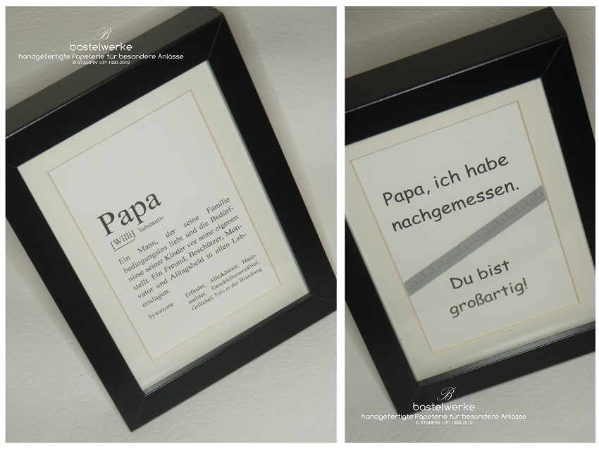Hier sind zwei Bilderrahmen für Männer bzw. für Väter entstanden: Papa ich habe nachgemessen. Du bist großartig! Der Maßstab auf dem rechten Bild lässt sich farblich variieren, genauso wie die Schriftart und Schriftfarbe.