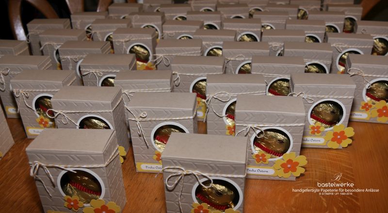 Der Hase macht sich nun zusammen mit der kleinen Grußkarte als Endprodukt auf den Weg zum Auftraggeber.