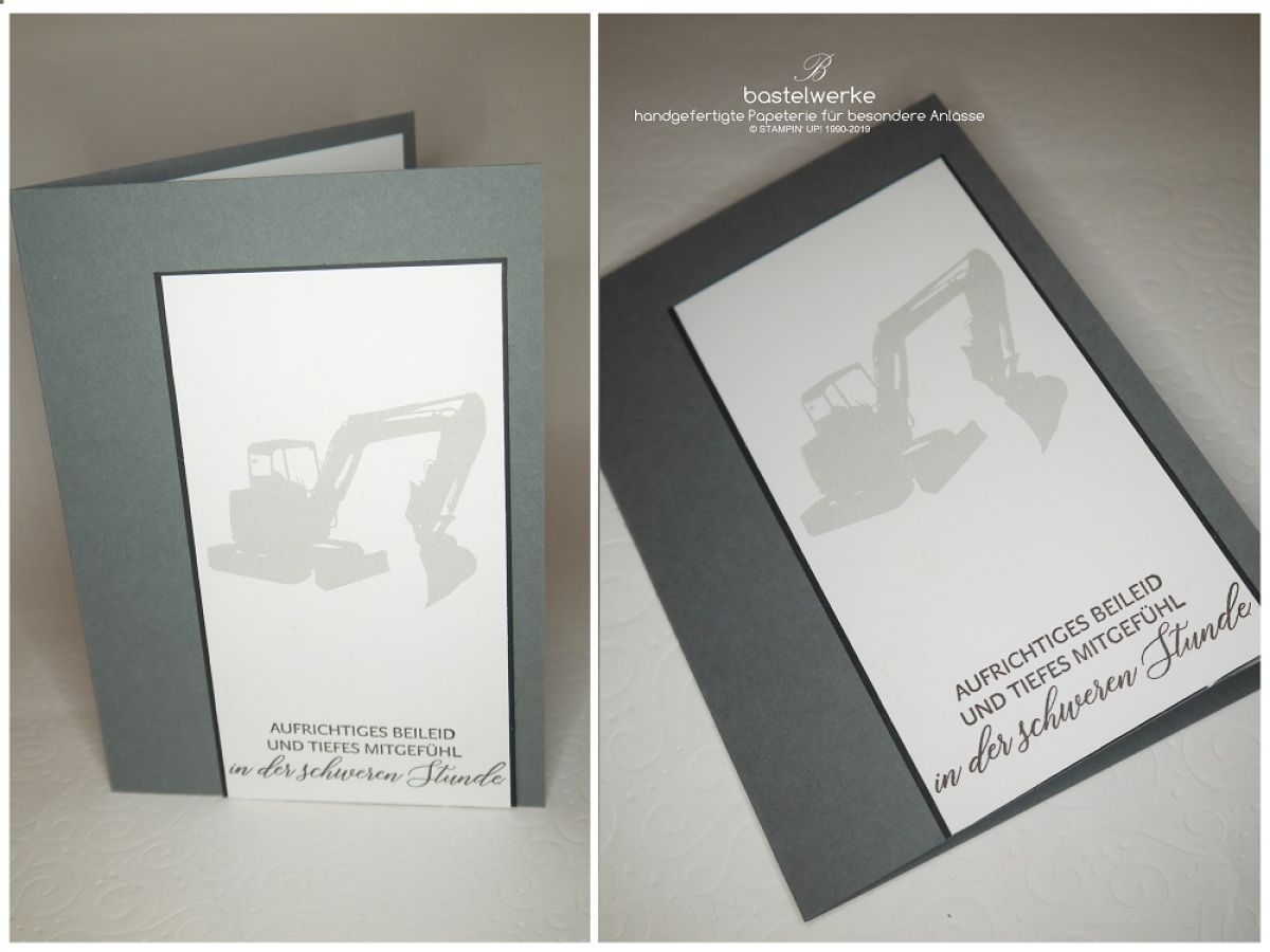Auch Trauerkarten können personalisiert sein. Diese Kundin kam mit dem Wunsch zu mir, eine Trauerkarte mit einem Bagger zu verbinden, da der Vestorbene eine große Passion dafür hatte.Und das ist sie geworden: