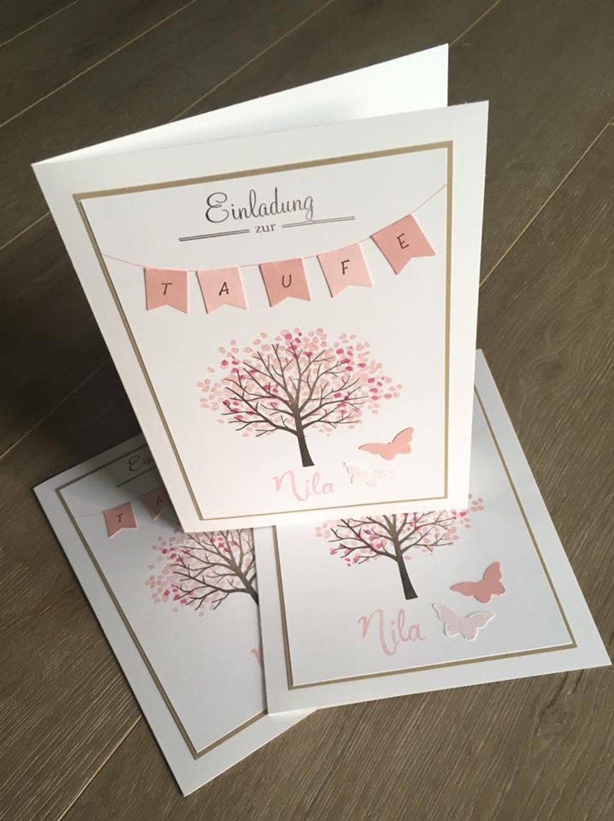 Heute zeige ich euch eine Einladung zur Taufe. Das Layout mit dem Baum und den Wimpeln ist der Taufkerze nachempfunden und spiegelt sich später noch in den Menükarten sowie den Gastgeschenken wieder.