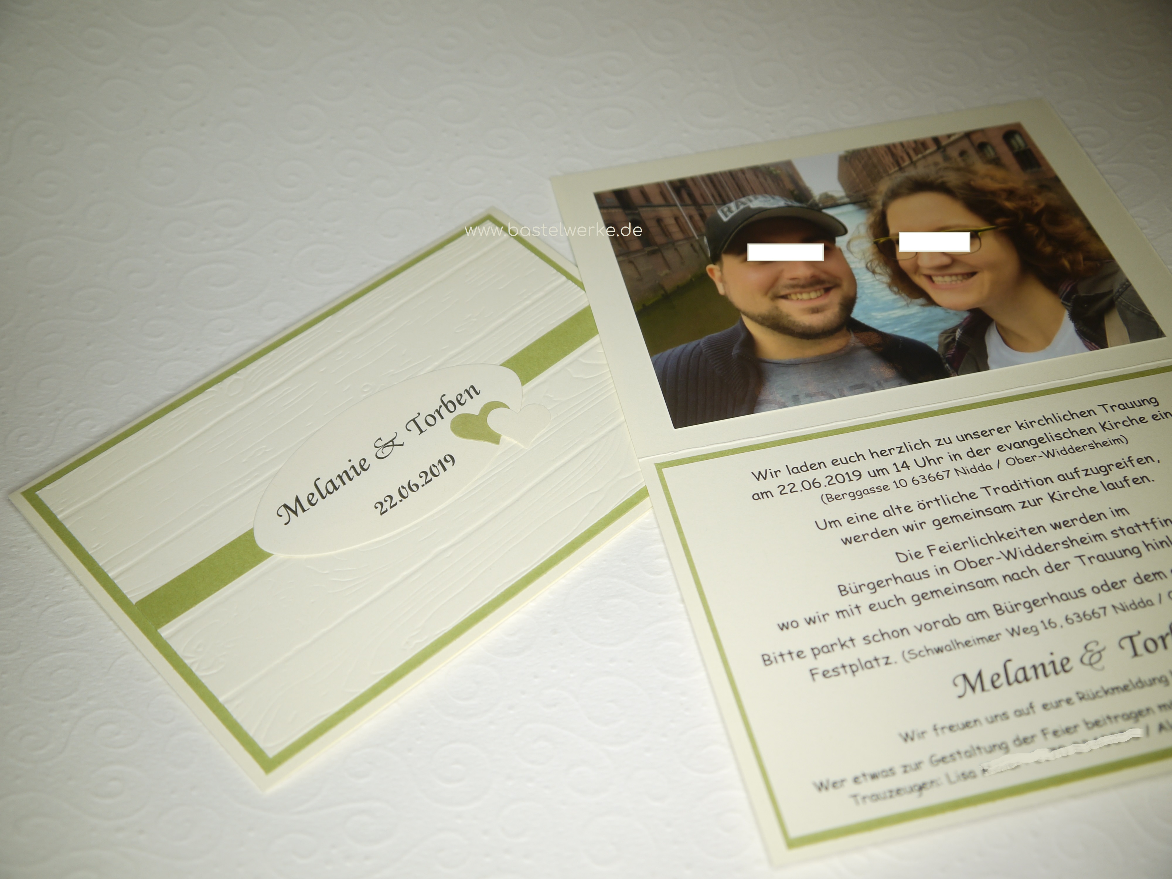 Angelehnt an das Modell von Kathrin und Christian wurde die Einladung für Melanie und Torben an einem gemütlichen Abend zusammen entwickelt.