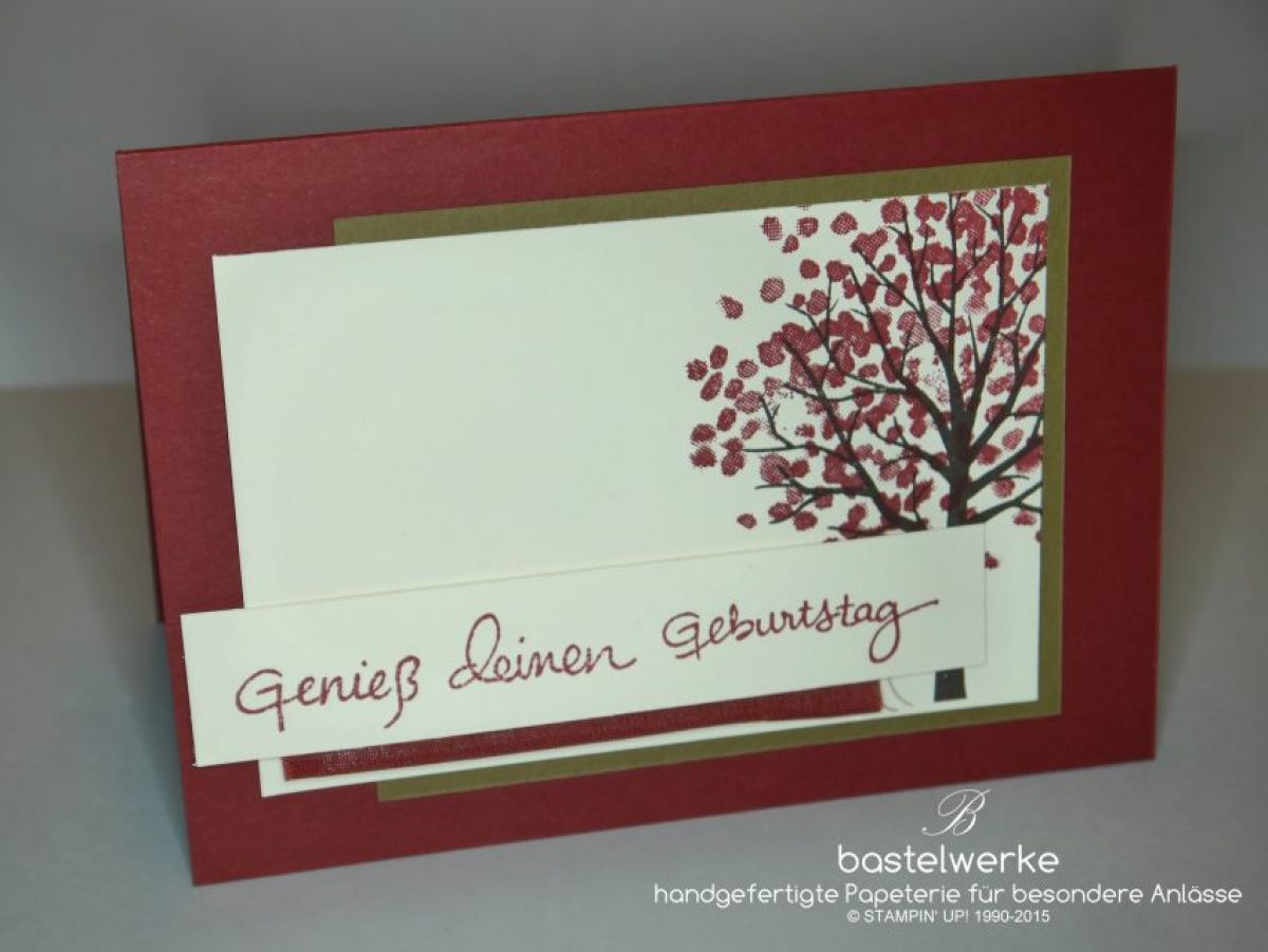 Mit dem Set "Baum der Freundschaft" und der Farbkombination Chili und Wildleder ist diese Geburtstagskarte entstanden.