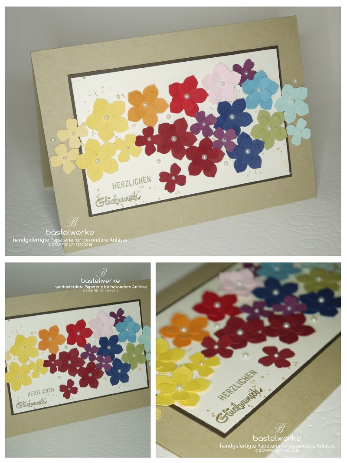 Diese farbenfrohe Glückwunschkarte hat diese Woche ein Geburtstagskind zum 70. Geburtstag erreicht. Es handelt sich um eine Dame, die ich selbst kenne. Eine Dame, die gelegentlich sogar Workshops bei mir besucht und ihre Freude am Basteln mit ihren Enkeln teilt. Daher runden der Spruch und die Karten das Bild dieser lebensfrohen Frau super ab.