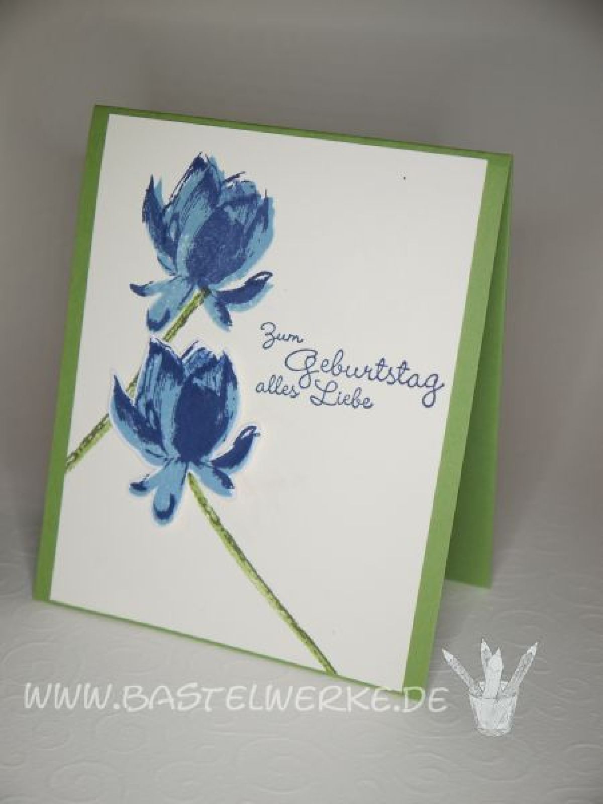 Frühlingshafter Gruß zum Geburtstag. Das Stempelset "so froh" stammt aus der Stampin' UP! Sale-A-Bration Broschüre und ist, in meinen Augen, einfach fabelhaft. Weitere Karten, die nach diesem Prinzip gefertigt wurden, findest du in der Kategorie Workshop.