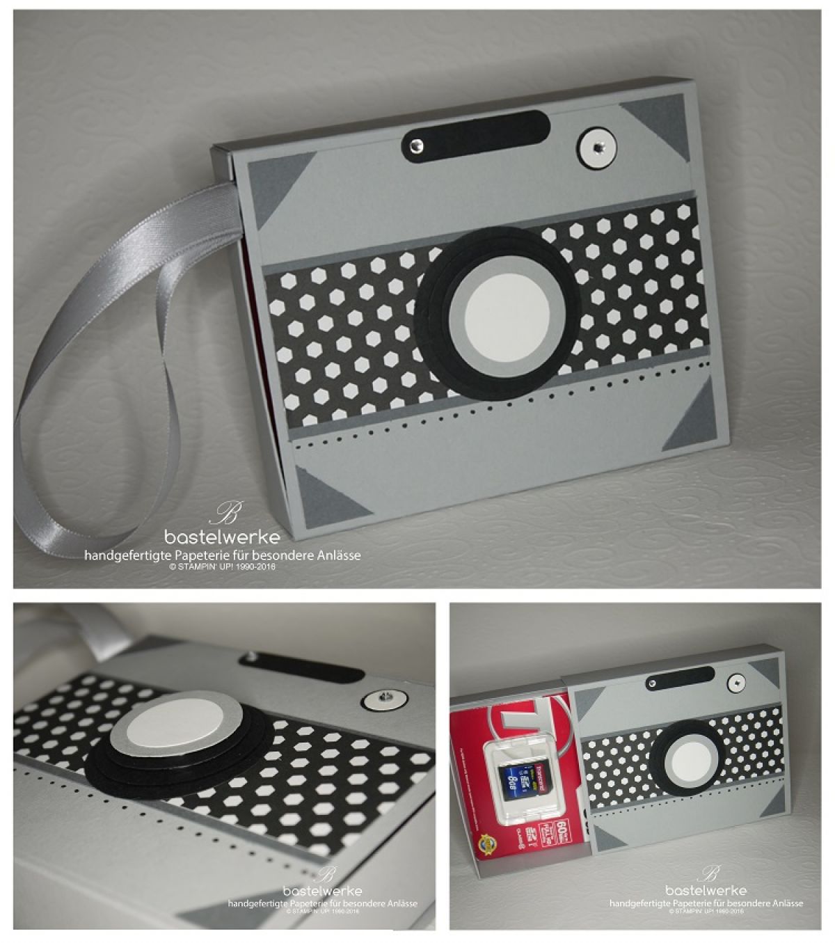 Aber heute klappt es (endlich): Speicherkarten werden hier originell in einer Kamera Box verpackt und verschenkt. Die Reaktion der Beschenkten ging runter wie Butter: "Das bekommt einen besonderen Platz".