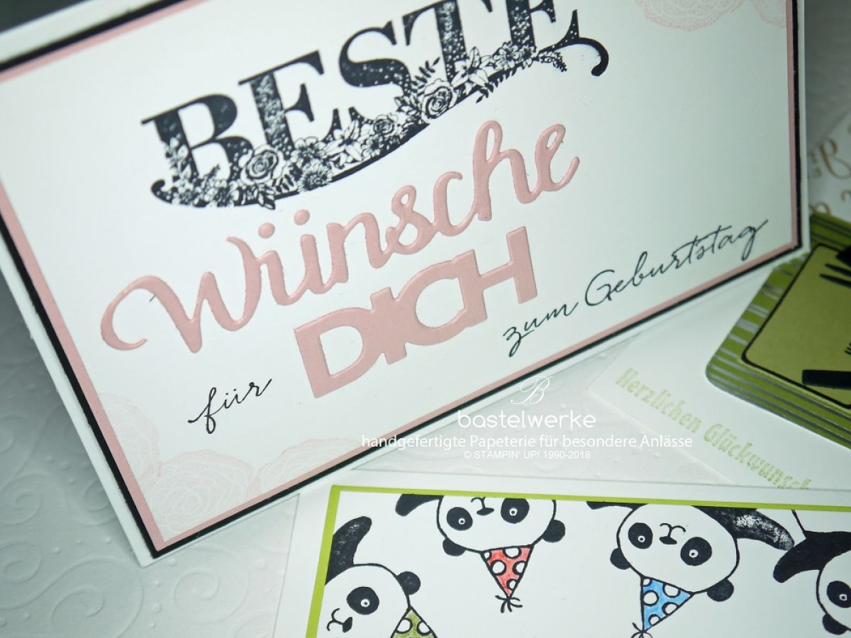 Hier bekommt ihr einen Einblick, was man aus den Sets Kittelkreationen, Tortentraum, Partypandas, Beste Wünsche und den Thinlits Formen Wunderbar zaubern kann.