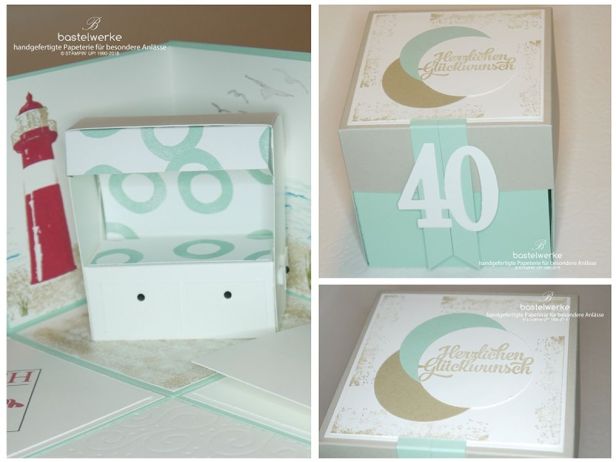 Vor ein paar Tagen ist diese (Urlaubs-) Box entstanden. Als Geburtstagsgeschenk zum 40. Geburtstag und zeitgleich als Überraschung für einen Urlaub am Strand. Das Stempelset "Durch die Gezeiten" hat den Hintergrund perfekt abgerundet.