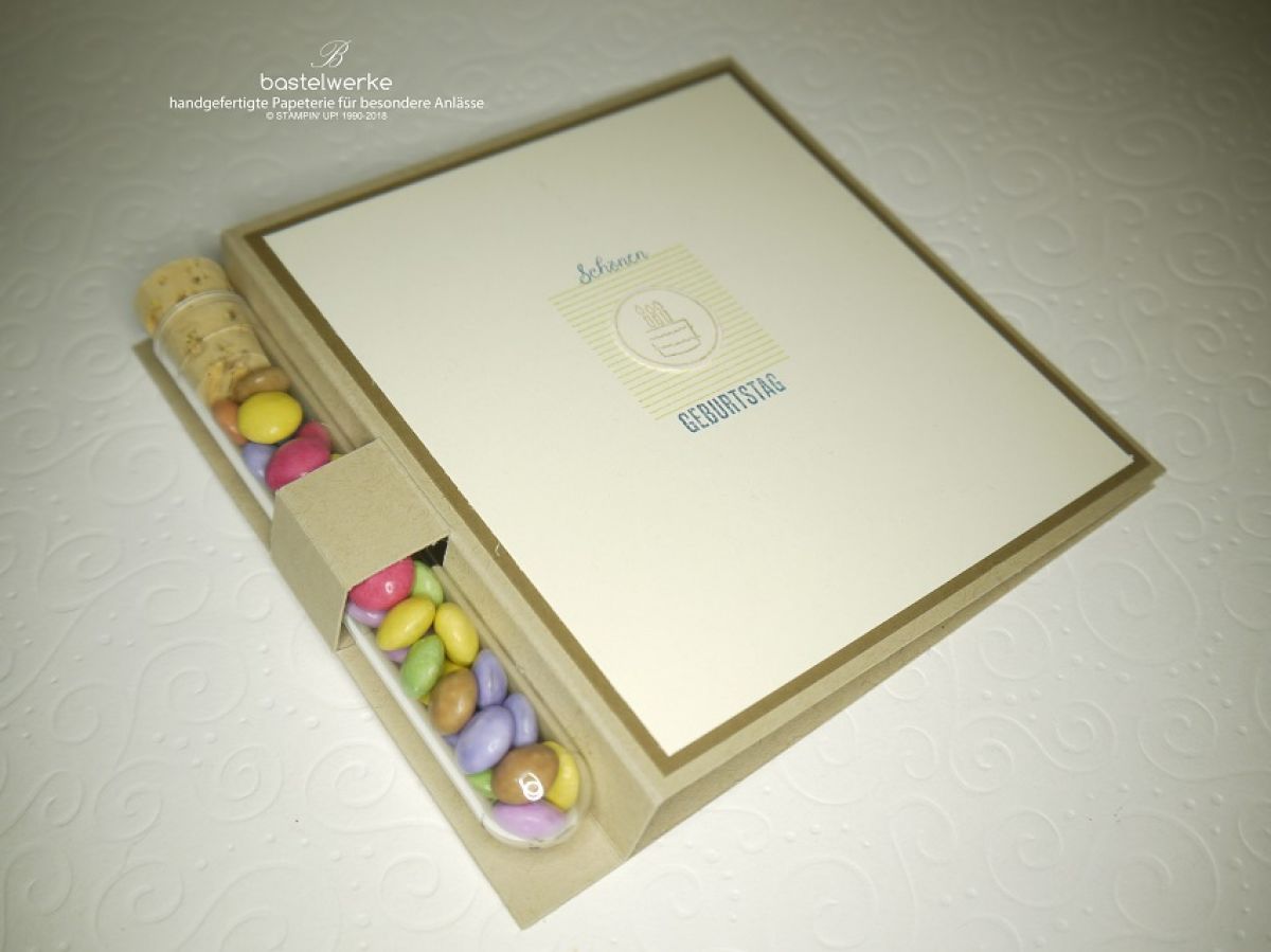 Frisch aus dem Urlaub zeige ich euch heute eine Grußkarte mit eingebautem Naschfach