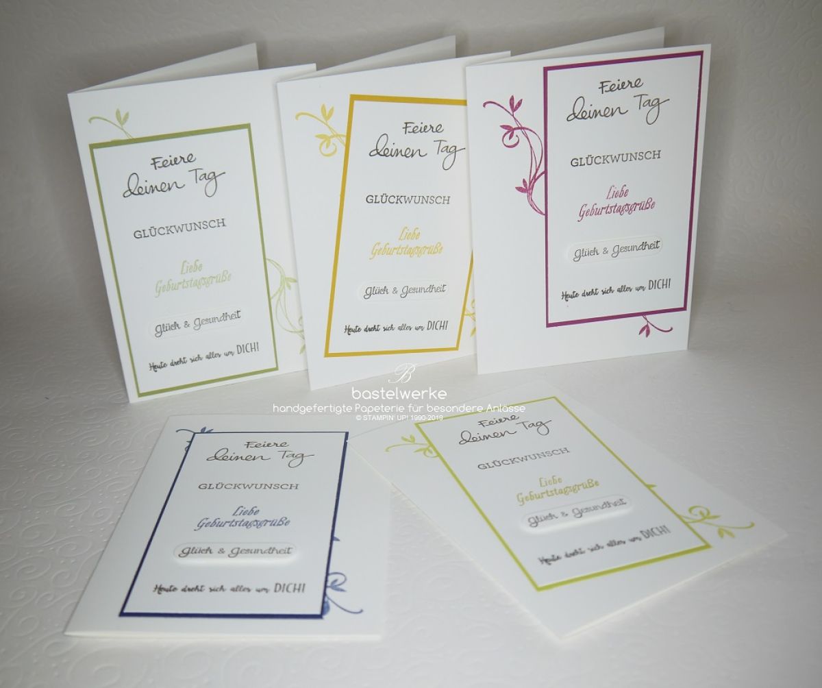 Auch diese 5 Karten gingen als Geburtstagsgrüße in den Vorrat für das Kollegium. Den ersten Schwung habe ich euch hier gezeigt.