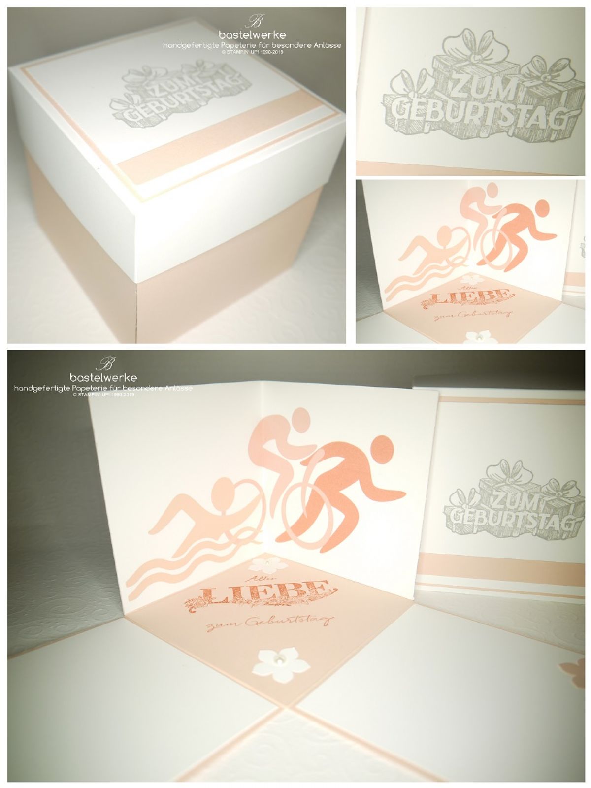 Die liebe Susanne hat diese Box vor einiger Zeit bei mir bestellt. Wichtig war, dass das Thema Sport aufgegriffen wird, da das Geburtstagskind dem Triathlon zugetan ist. Das hab' ich draus gemacht: