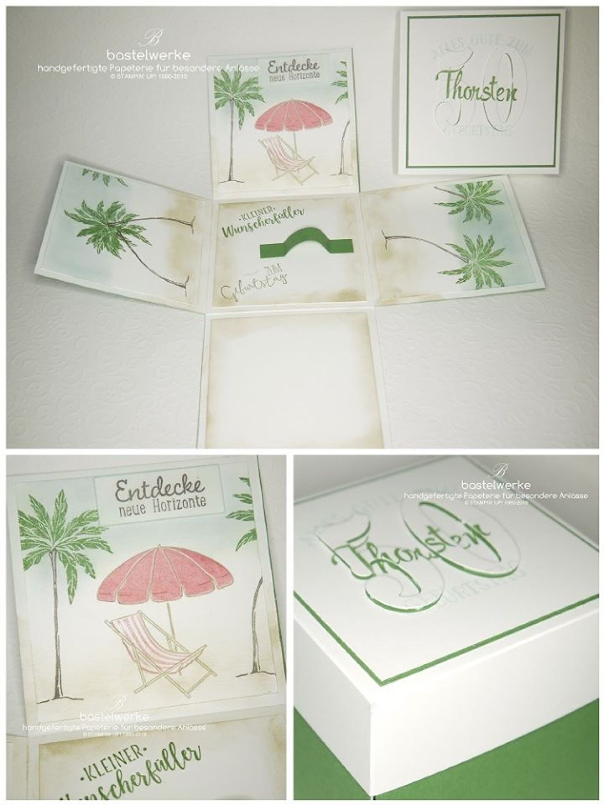 Zum 50. Geburtstag wollte Thorsten gern eine paradiesische Reise machen . Das haben aufmerksame Gäste mitbekommen und eine entsprechende Box bei mir bestellt. Somit wurde das Thema Reisen unter Palmen in der Geburtstagsbox aufgegriffen.