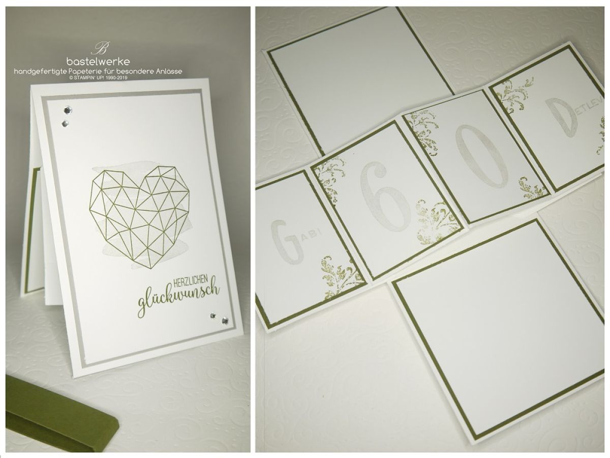 Lange vor Corona haben Gabi und Detlev ihren 60. Geburtstag gemeinsam gefeiert. Dafür wurde diese Pop-Up-Karte bei mir bestellt.Außen ist sie schlicht gehalten, im Inneren kommt dann der Aha-Effekt zur Geltung.