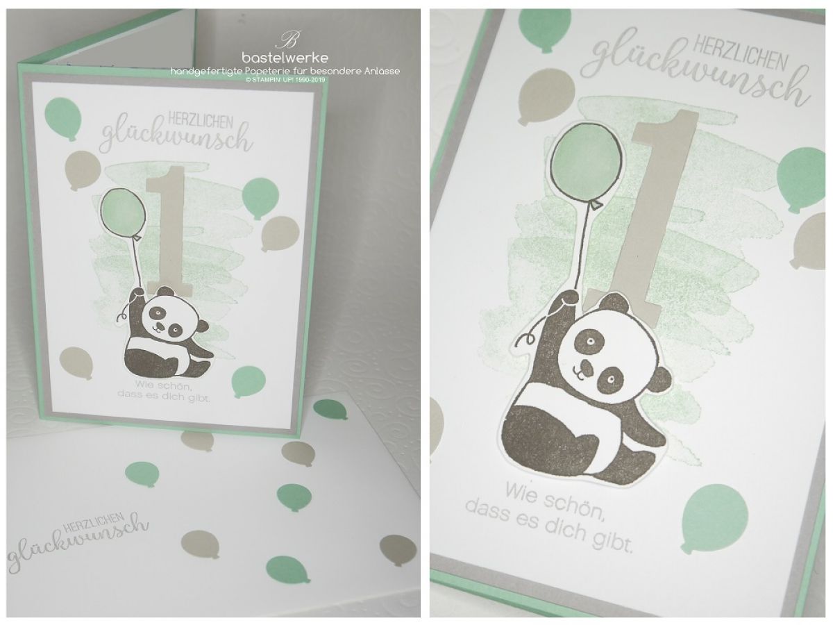 Zum ersten Geburtstag durfte ich diese schöne Karte machen. Unter dem pitzigen Panda steht der schöne Spruch "Wie schön, dass es dich gibt.", etwas was man Kindern nicht oft genug sagen kann.