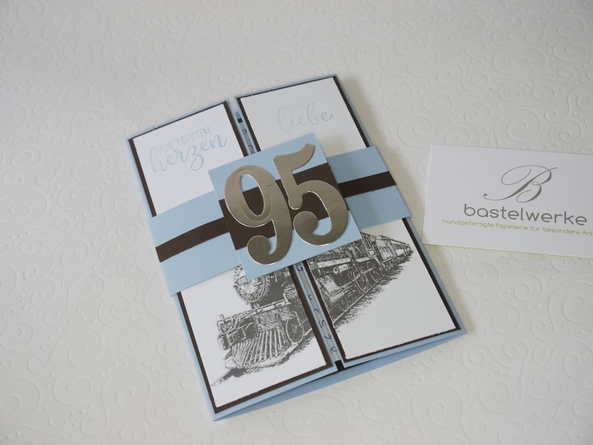 Wenn man Menschen, die aufgrund ihres Alters zur Corona Risikogruppe gehören nicht besuchen kann, so kann man ihnen aber eine personalisierte Karte schicken. Und da der Jubilar früher bei der Bahn arbeitete, wurde dies' aufgegriffen. Es ist nur ein kleines Detail, aber ist es nicht schön, wenn sich die Schenker Gedanken machen, was zum Geburtstagskind passen kann?