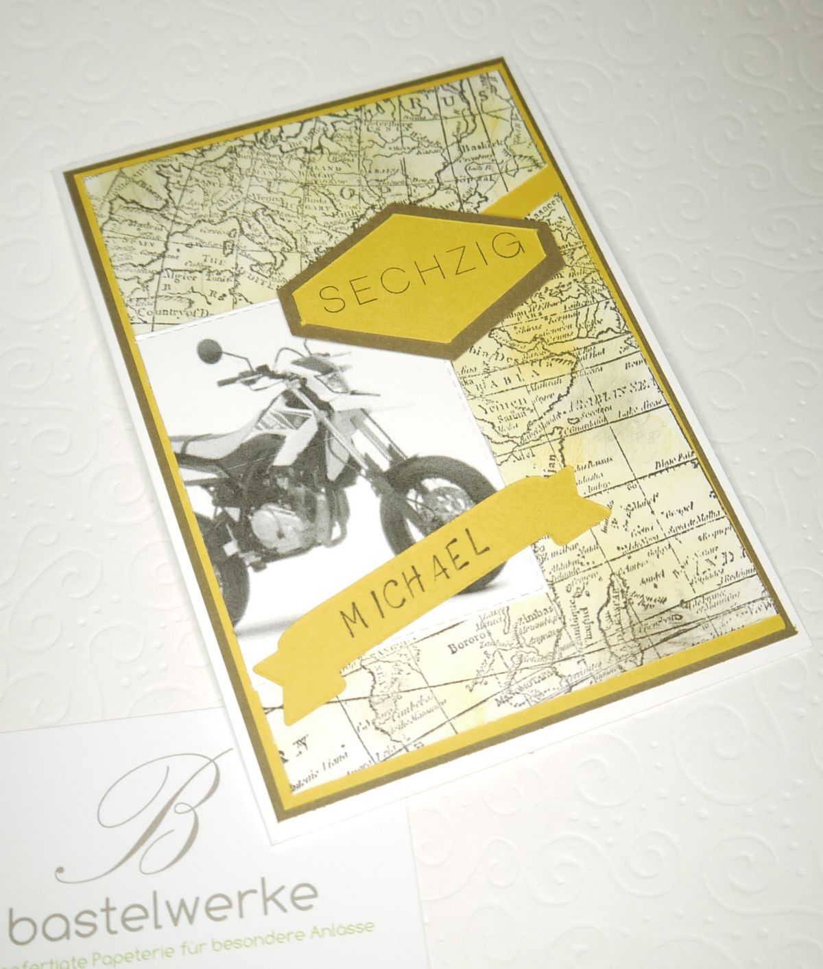 Geburtstagsgruß für Michael zum 60. Geburtstag. Da er ein begeisteter Motorrad-Fahrer ist, war schnell klar, wie die Karte aussehen wird.