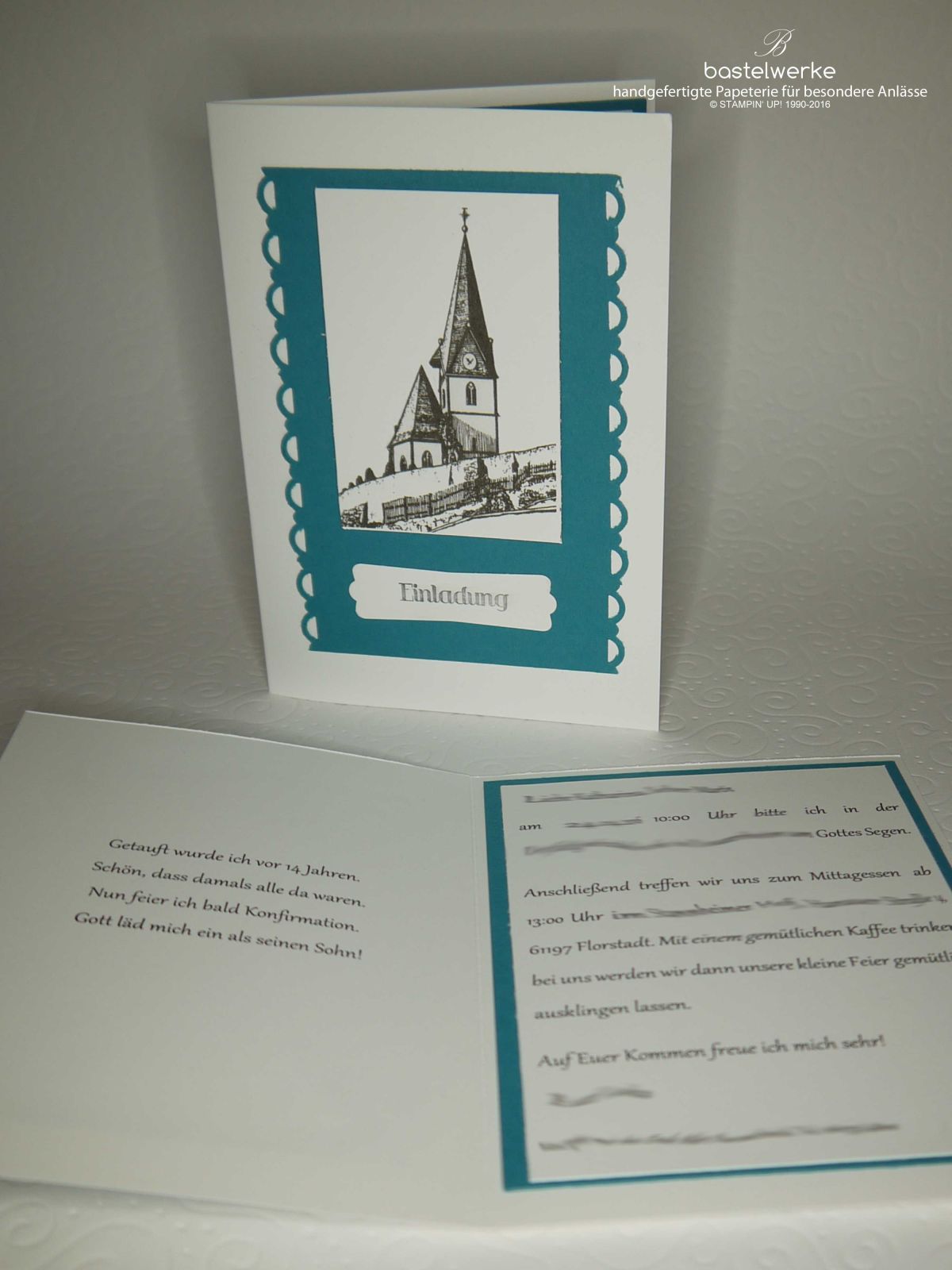 Bei dieser Einladung hat sich der Konfirmand gewünscht, die Kirche, in der er konfirmiert wird in die Einladung einzubauen. Alles kein Problem!