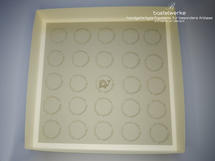 Auch den Boden der Box habe ich entsprechen gestaltet. In den Kreisen steht "Glückwunsch"