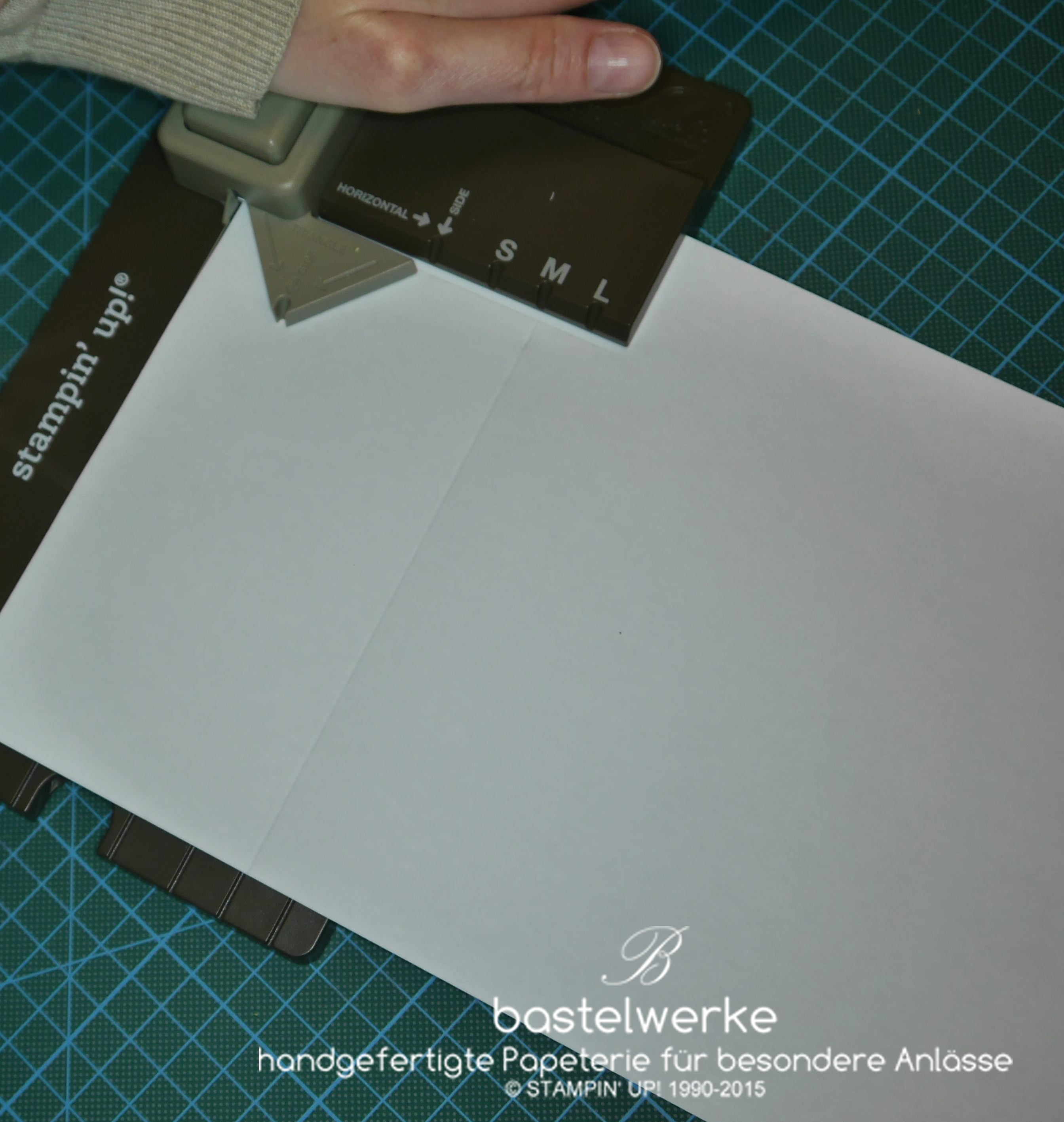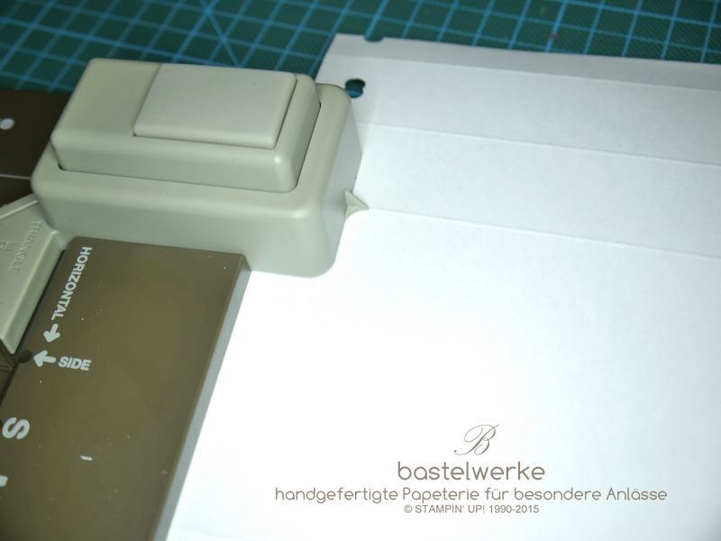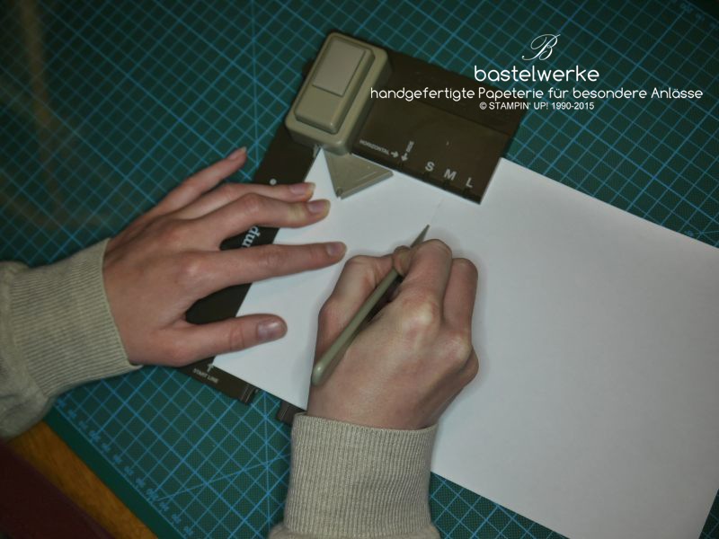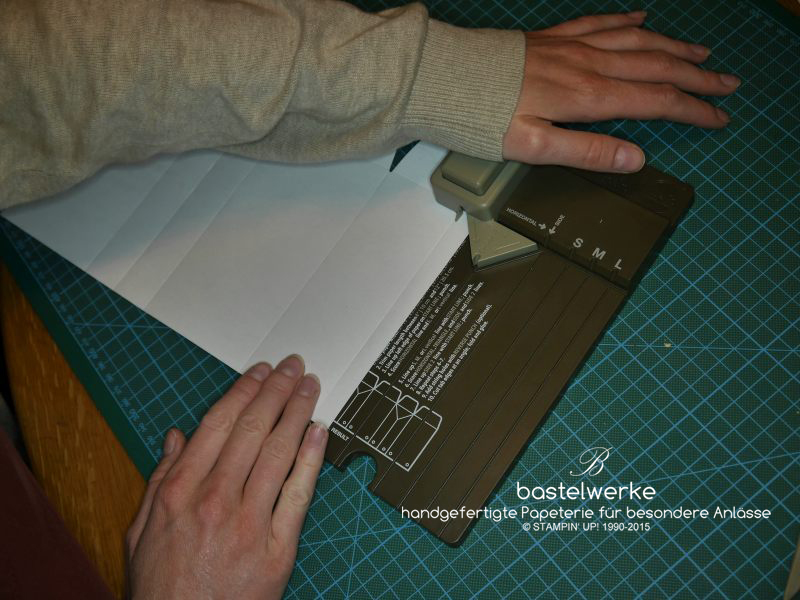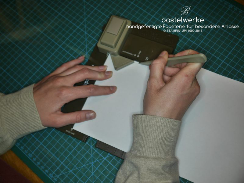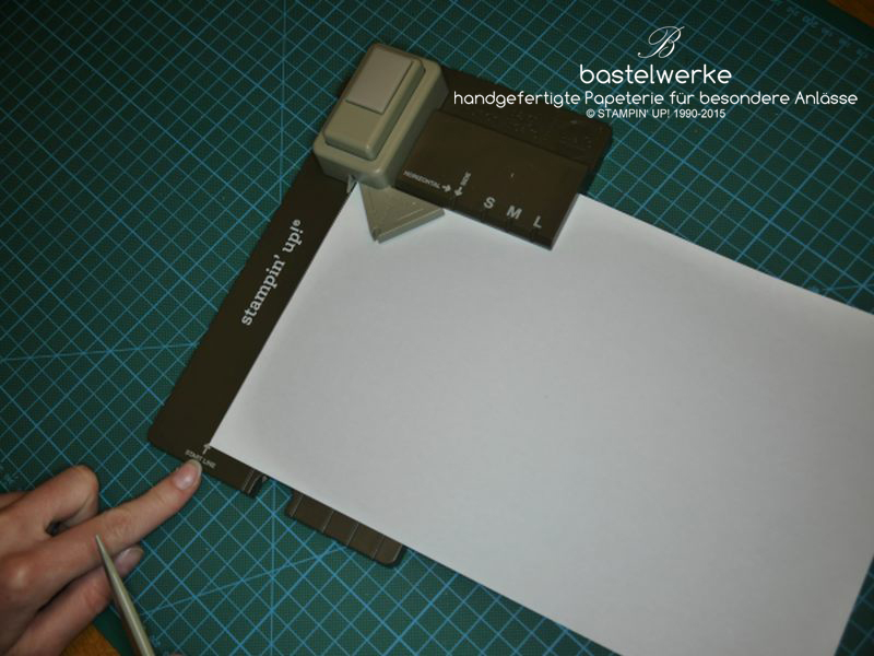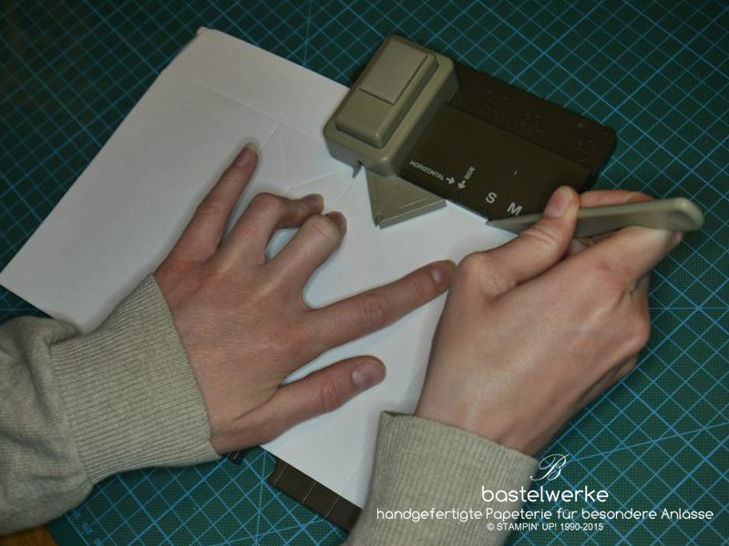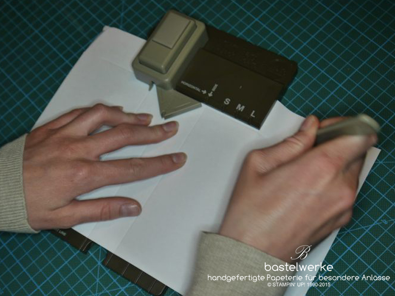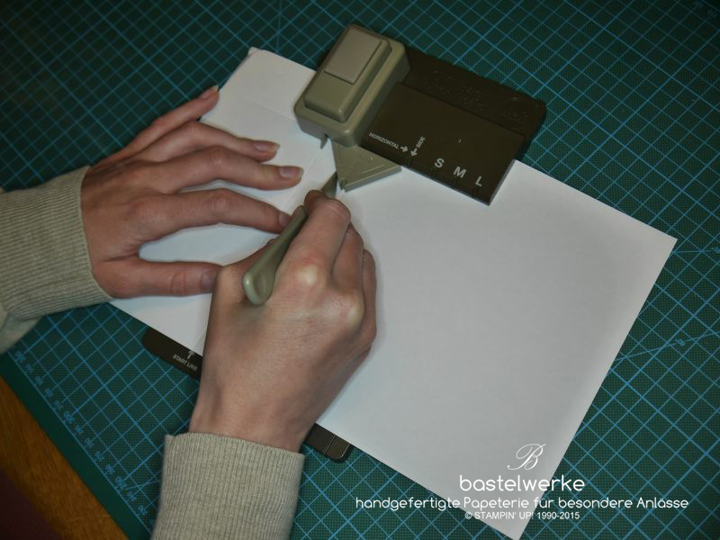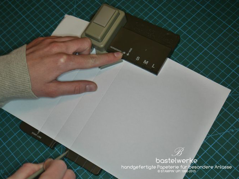 3) Papier links an die Startlinie anlegen und stanzen.