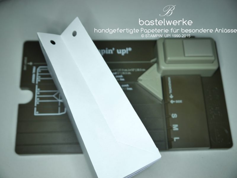 Zum Abschluss stanzen. Damit ist der Vorderteil der Tüte bereits fertig: