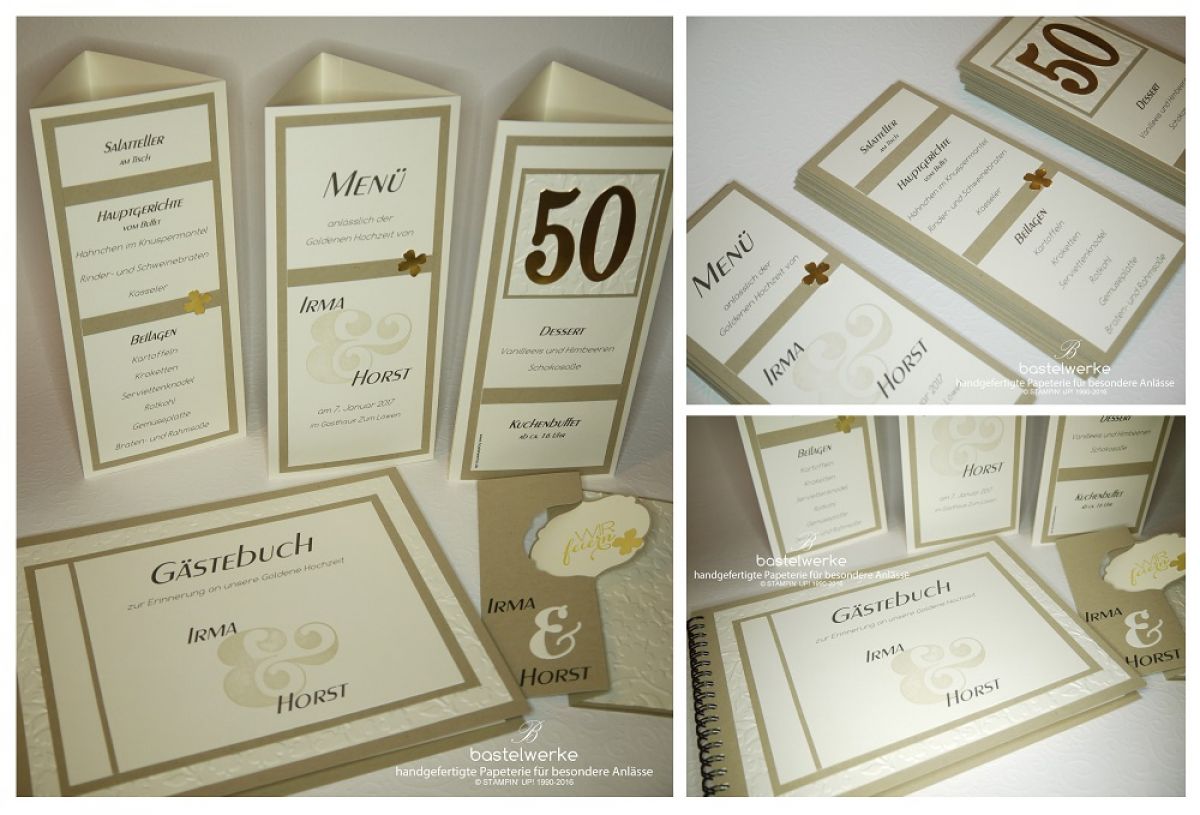 Für ein Ehepaar hat das Jahr 2017 ganz besonders angefangen, denn sie feierten vergangenes Wochenende ihre Goldene Hochzeit. Dankeswerter Weise durfte ich die Einladungen, Menükarten und ein Gästebuch für die Beiden anfertigen.