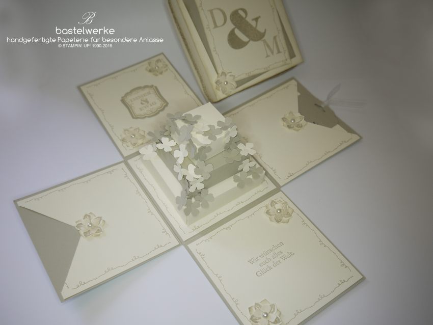 Die Auftraggeberin meldete sich recht kurzfristig bei mir und fragte, ob ich ihr noch eine Hochzeitsbox zaubern könnte. Wir haben kurz ihre Wünsche besprochen und sie war sehr dankbar, dass ich die Zeit fand die Box noch nach ihren Vorstellungen erstellen zu können.