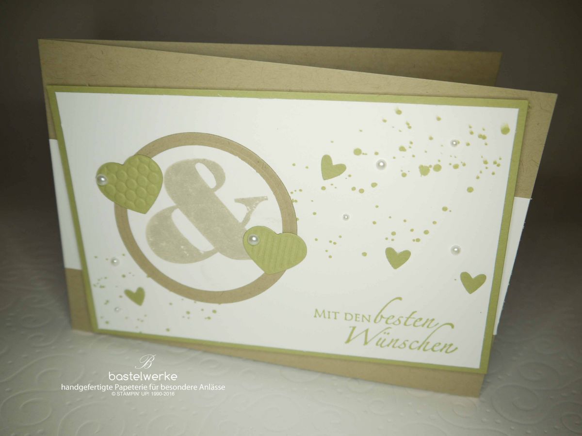 Mit den besten Wünschen macht sich diese Karte zur Hochzeit auf die Reise. Die Kombination von Farngrün, Saharasand und Savanne wirkt edel und frisch zugleich.