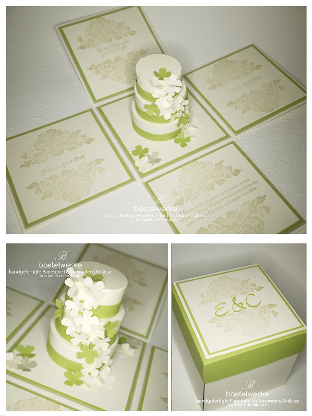 Das Wetter wird besser, die Frühlingsgefühle steigen und somit kommt auch die Hochzeitssaison immer näher. Hier seht ihr ein Hochzeitsgeschenk in den wunderschönen Farben creme & grün.
