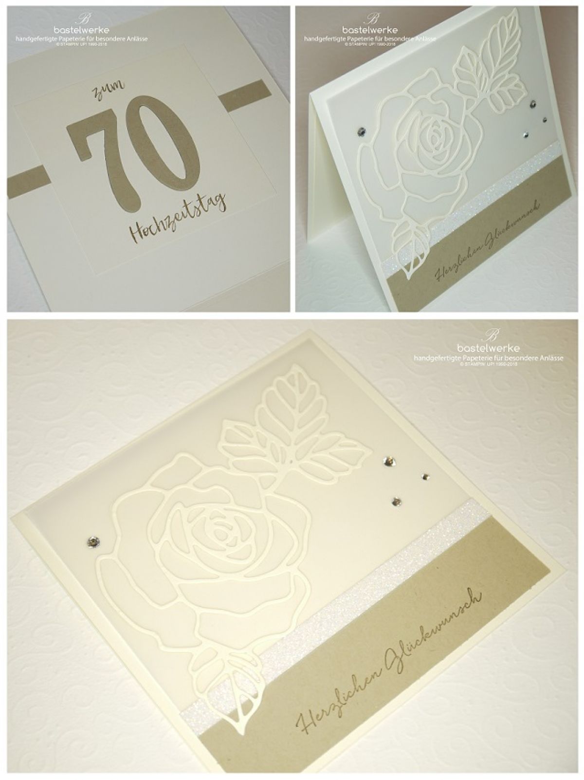 Normalerweise stelle ich die Aufträge nicht vor dem Tag der Feier online, dass das Hochzeitspaar diese Karte online findet, ist aber sehr unwahrscheinlich ;) Denn Lieselotte und Wilhelm feiern bald ihren 70. Hochzeitstag und ich durfte diese Glückwunschekarte dafür anfertigen.
