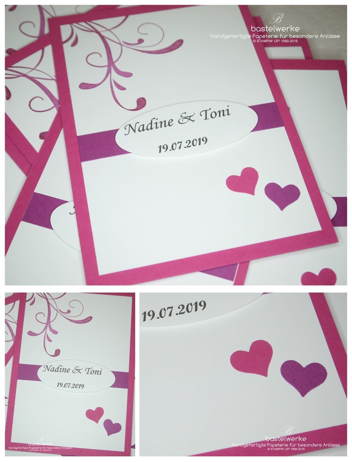Was passt besser zu Frühlingsgefühlen als eine Hochzeitseinladung? Auf Empfehlung von der lieben Melanie haben sich Nadine und Toni mit mir in Verbindung gesetzt. Angelehnt an eine vergangene Hochzeit (klick) haben wir vor ein paar Wochen diese Einladung gemeinsam erarbeitet. Es ist diesmal keine Klappkarte sondern eine Einladung im Postkarten-Format in den Farben Sommerbeere und Wassermelone.