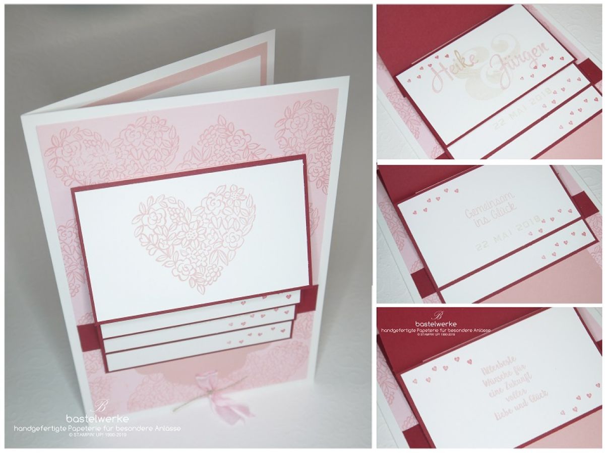 Die beiden haben sich heute erneut geheiratet und dafür sollte es eine romantische, große Karte mit viel Liebe geben. im Inneren befindet sich noch ein persönlicher Spruch und ein Einstecker für einen Gutschein, der zum eigentlichen Hochzeitsgeschenk gehört.