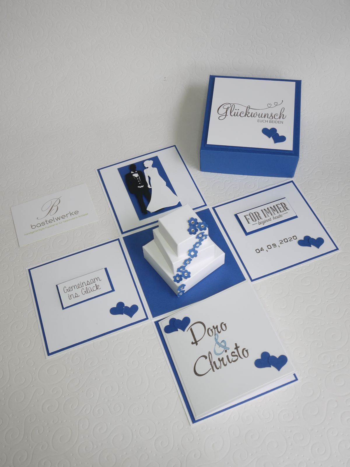 Anfang des Monats haben sich Doro und Christo standesamtlich getraut und diese schlichte Box wurde ihnen zu ihrem großen Tag überreicht. Da er griechische Wurzeln hat, ist die Box auch farblich an Griechenland angelehnt.
