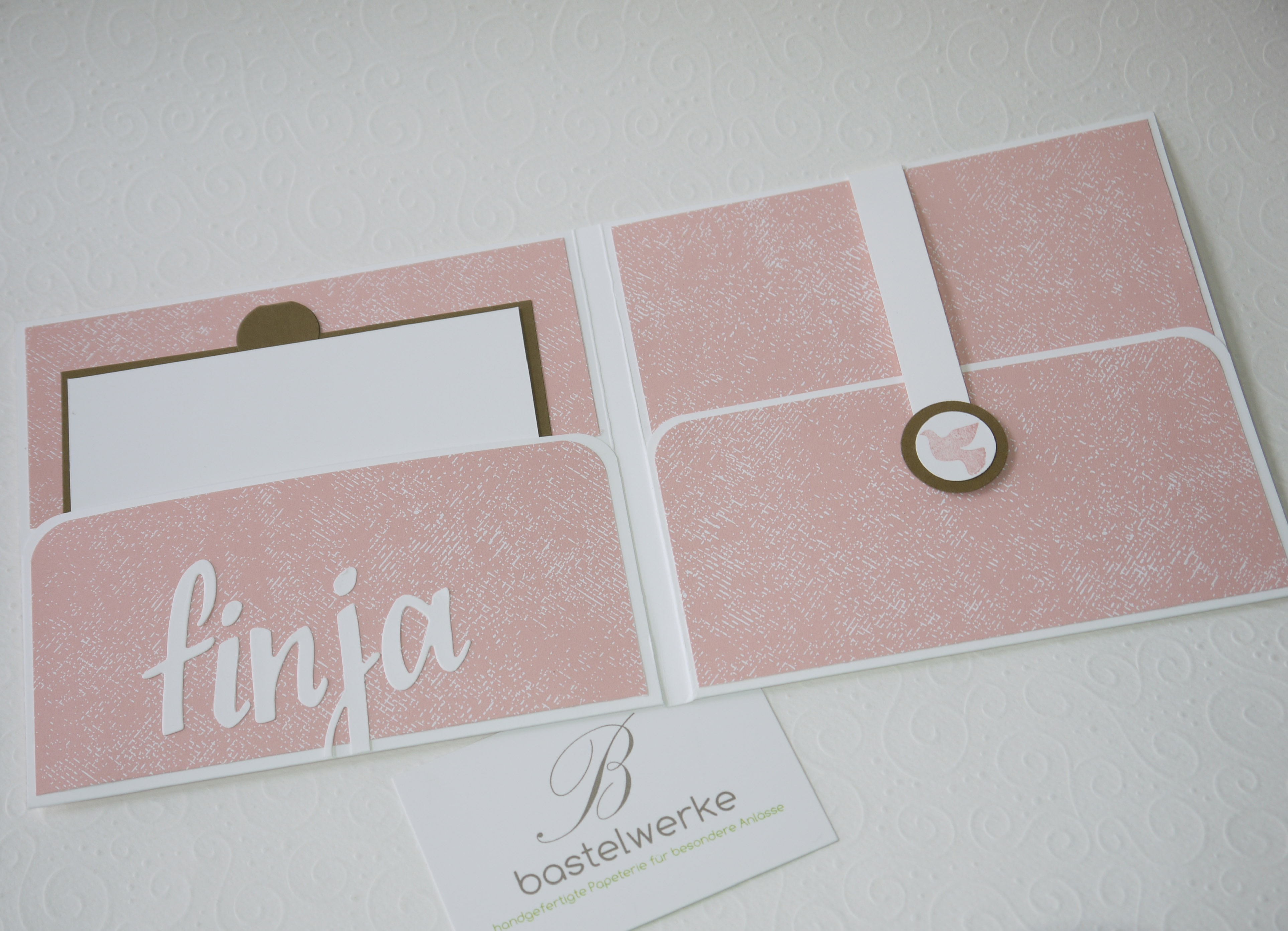Glückwunschkarte zur Taufe mit integriertem CD-Fach. Eine ungewöhnliche Kombination? Nicht, wenn darin die Fotos der Taufe verschenkt werden. Und dass das Ganze personalisiert ist, ist doch keine Frage.
