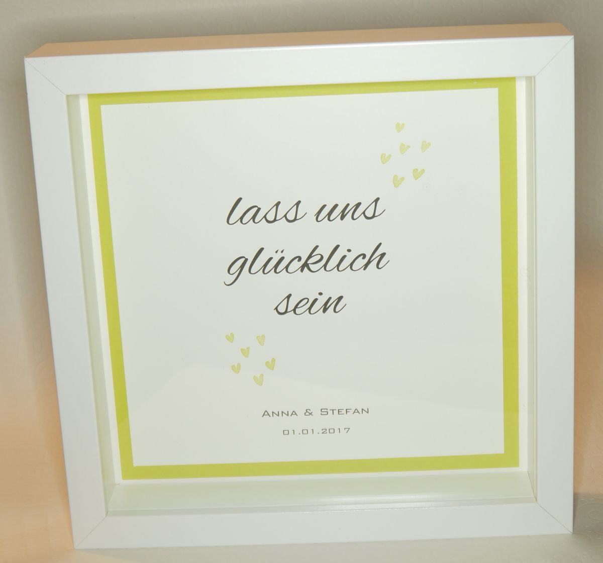 Dieser entstand zum Jahrestag und ziert seitdem das Wohnzimmer des Paares. Wie gewohnt, nach gemeinsamer Abstimmung hinsichtlich Farbe und Schriftart.
