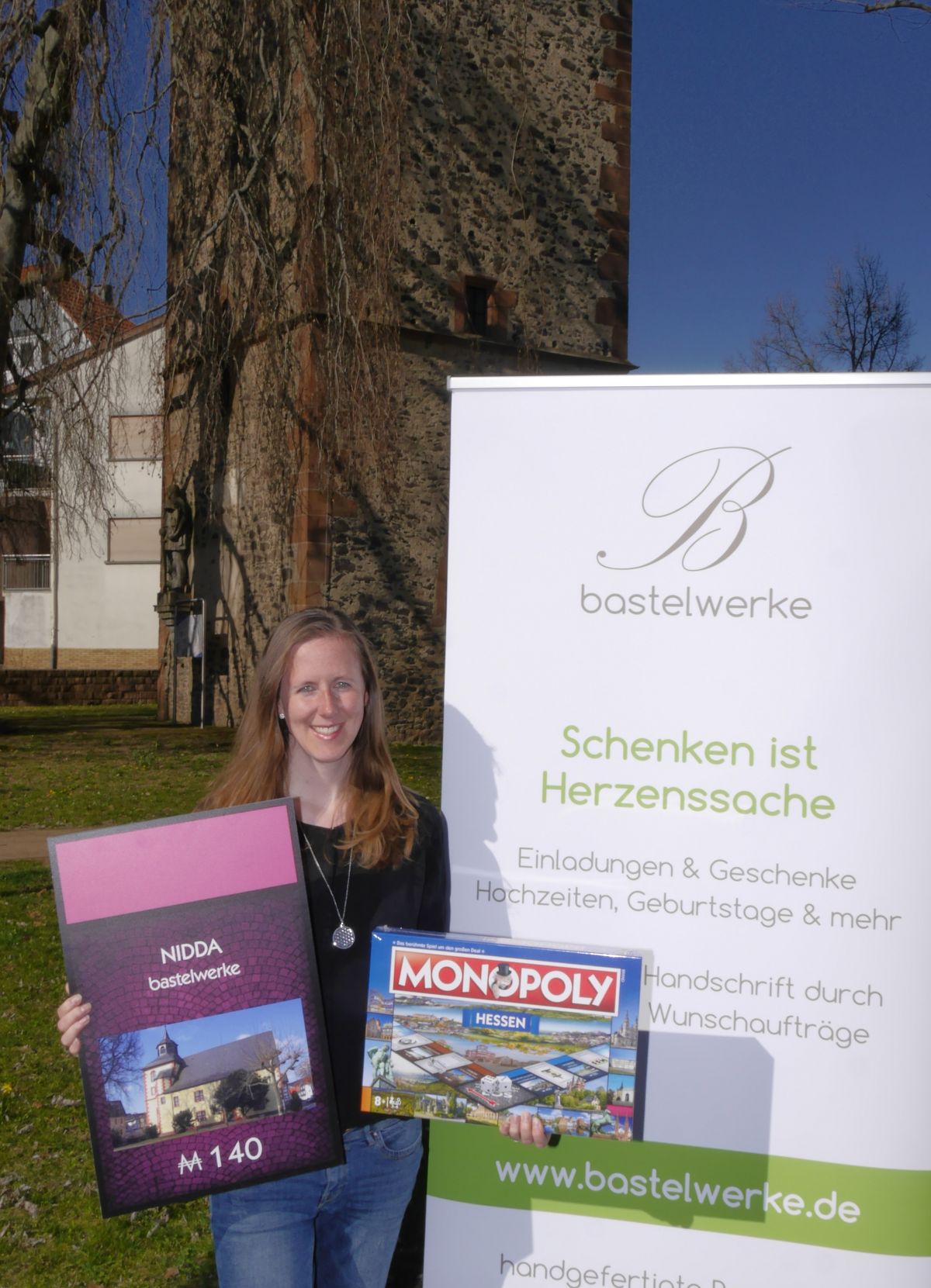 Und nachdem die Großgemeinde ihr 50-jähriges Jubiläum 2020 feierte, kam kurz darauf die einmalige Chance, die genutzt werden musste: Ich habe mich mit bastelwerke bei Monopoly Hessen beworben und bin sehr stolz unsere schöne Stadt Nidda mit meinem Label bastelwerke nicht nur hessen- sondern deutschlandweit zu vertreten.
