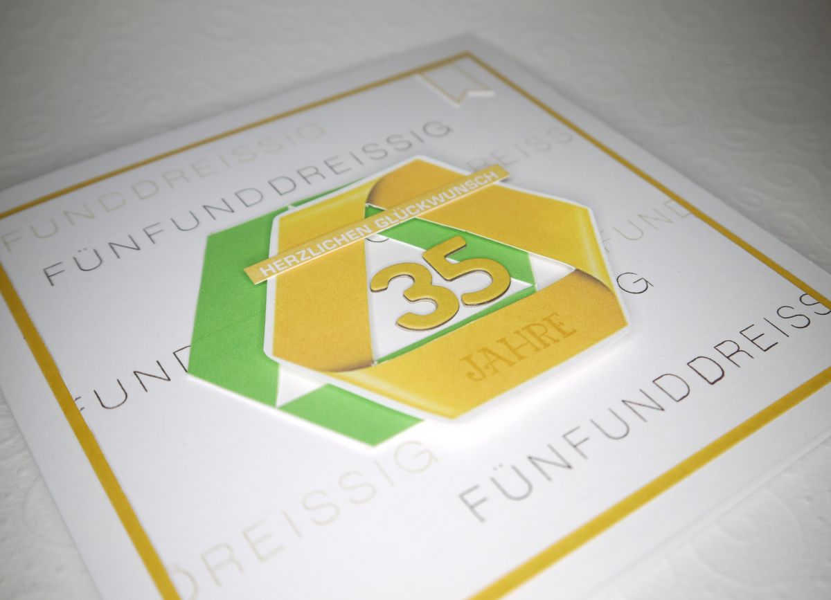 Deshalb habe ich mich sehr gefreut, als ich den Auftrag zu dieser personalisierten Karte zum 35. Dienstjubiläum erhielt.