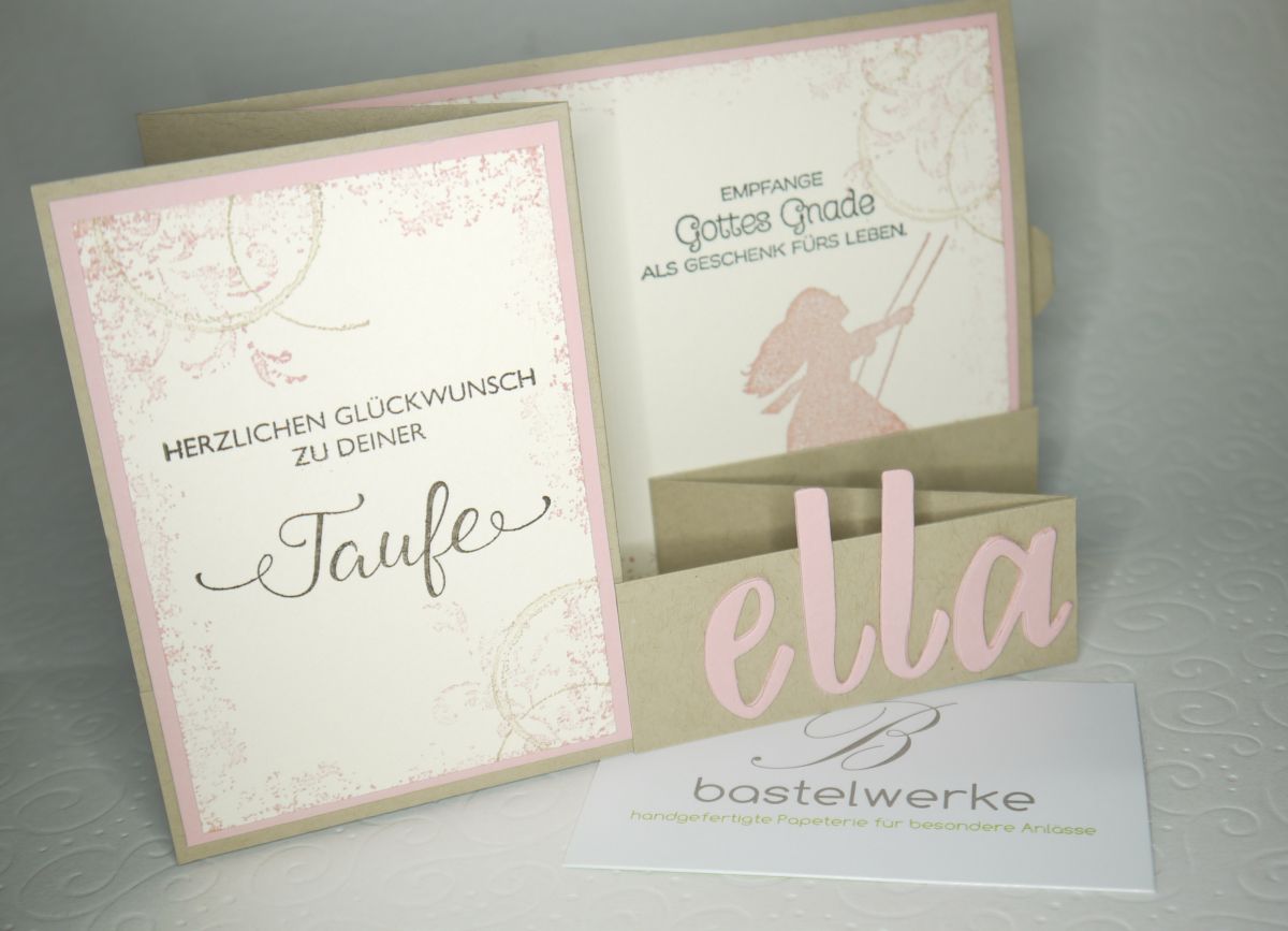 Am Wochenende wurde die kleine Ella getauft und zu diesem schönen Ereignis durfte ich diese Karte machen. Auf einer Seite der Karte befindet sich noch ein kleiner Schlitz, um das Geldgeschenk zu verstauen.
