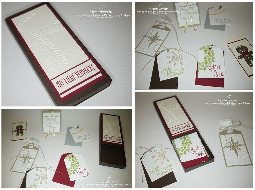 Ich habe mir vorgenommen, euch bis zum 24. Dezember jeden Tag ein Stück der (weihnachtlichen) Bastelwerke vorzustellen. Heute geht es um eine wunderschöne Box mit Geschenkanhängern.