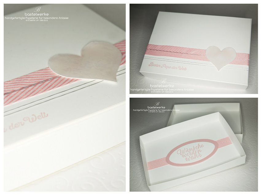 Das erste gemeinsame Weihnachten als Familie ist ein besonderer Moment. Dazu durfte ich diese Box erstellen, die noch mit wunderschönen Fotos gefüllt wird. Der Spruch "Wünsche werden wahr" aus dem Stempelset "Drauf und dran" passt an dieser Stelle wunderbar. Er befindet sich auf der Innenseite der Box und wird zusammen mit den Fotos zum Vorschein kommen.