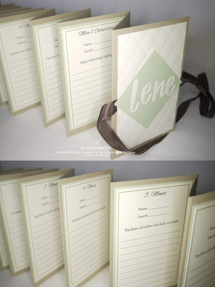 Ich habe mich für ein personalisiertes Leporello für das 1. Lebensjahr entschieden, um Doppelungen der Geschenke zu vermeiden. Und die quadratische Glückwunschkarte rundet das Ganze ab.