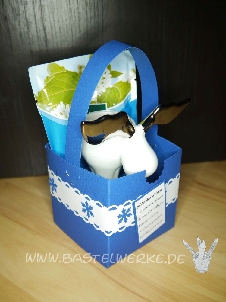 Der Wunsch der hier umgesetzt wurde, war eine Verpackung für je einen Teelichthalter und einen Badezusatz.