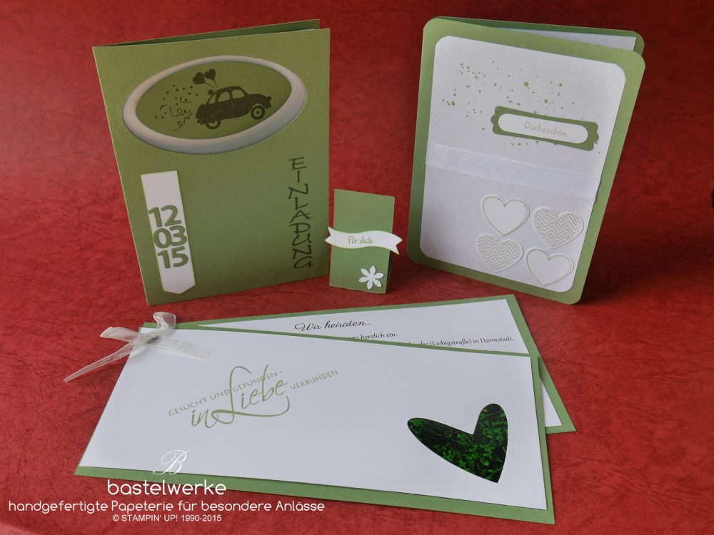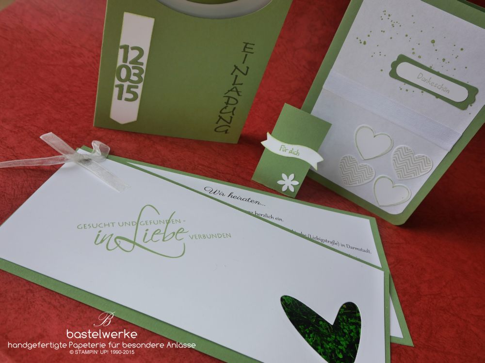 Es beinhaltet die Einladung zum Standesamt und zur Kirchlichen Trauung, das Gastgeschenk und die Danksagung