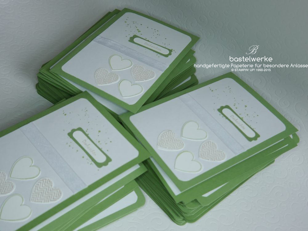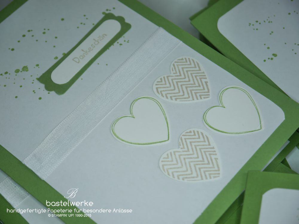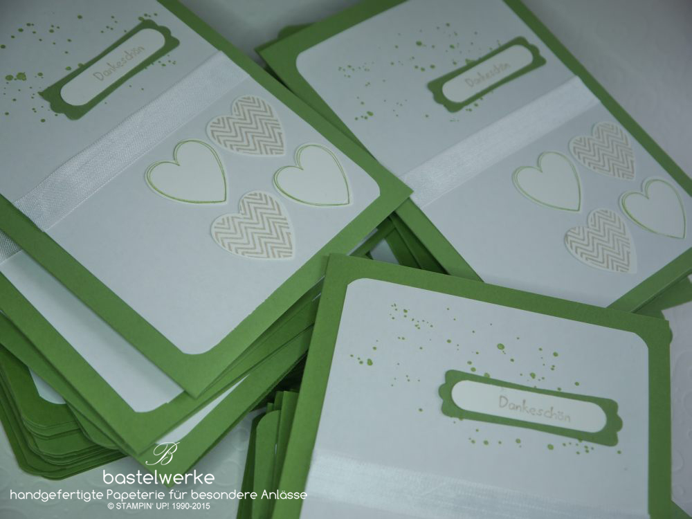 Zu jedem Glückwunsch gehört auch ein Dankeschön. Diese Dankeskarte ging in 120-facher Ausführung auf den Weg nach Darmstadt zum Brautpaar der Frühlingshochzeit.