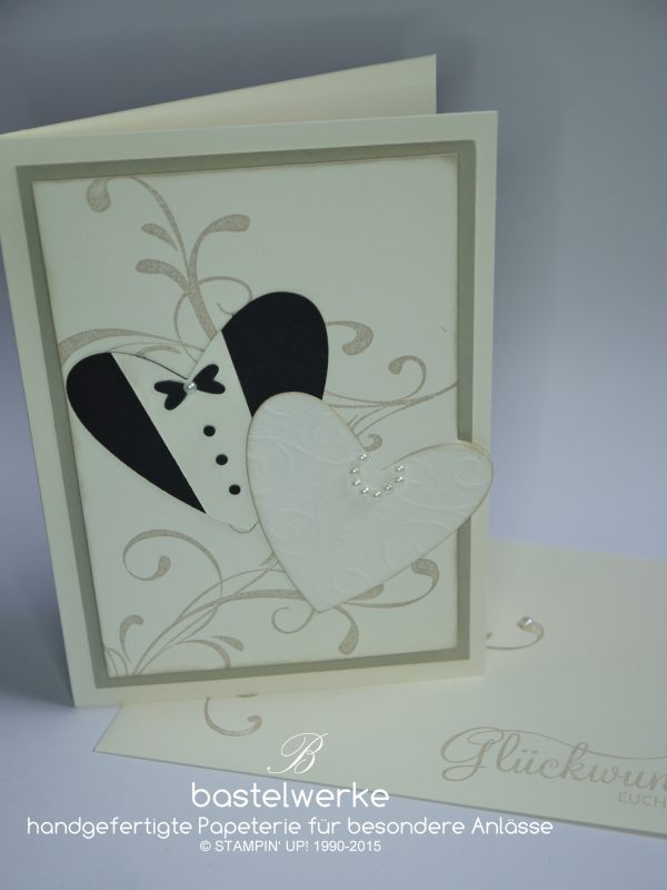Auch heute möchte ich euch eine Karte zu dem wunderbaren Anlass einer Hochzeit zeigen. Die Einladung des Brautpaares war sehr schlicht, dementsprechend dezent ist auch die Glückwunschkarte gehalten. Im Inneren befindet sich, wie so oft, noch ein kleiner Umschlag für ein Geldgeschenk.