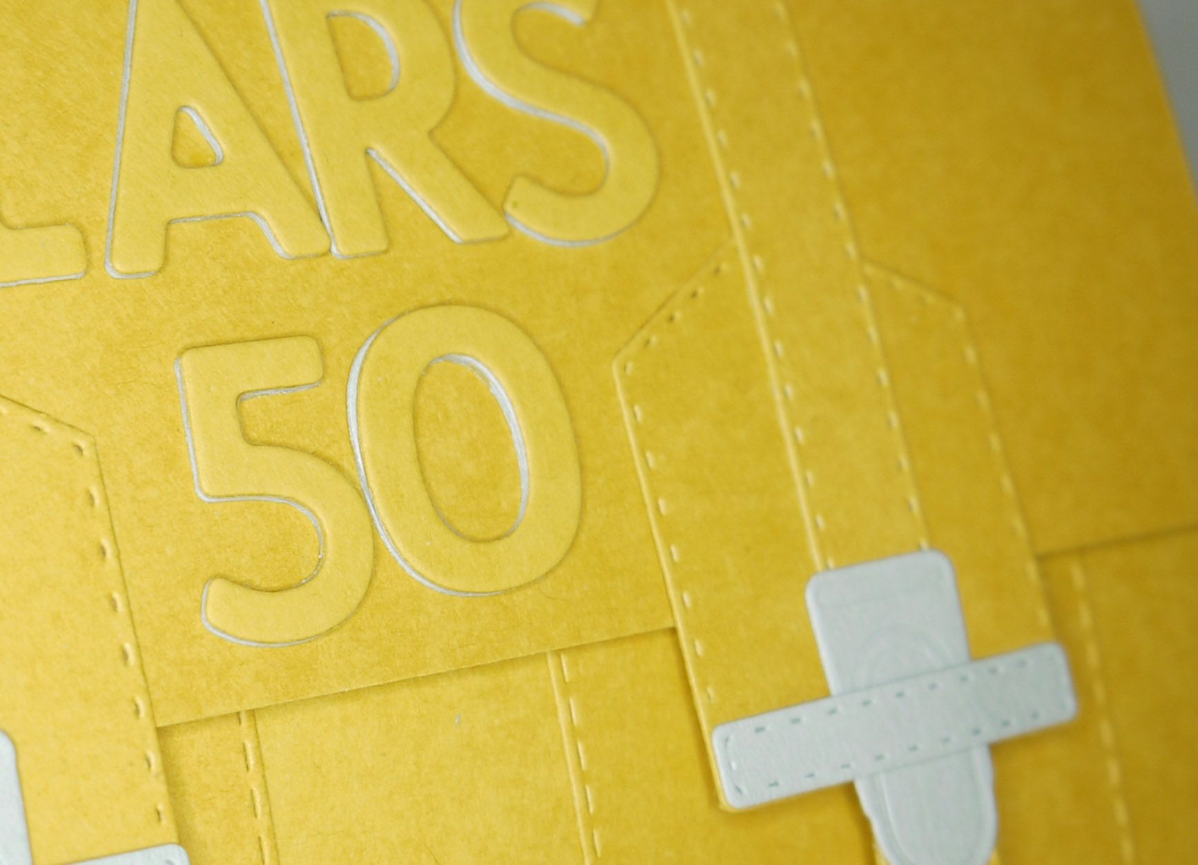 Die heute gezeigte Geburtstagskarte ging an Lars anlässlich seines 50. Geburtstag. Die Form der Aktentasche ist kein Zufall - warum? Siehe oben: weil er Lehrer von Beruf ist.