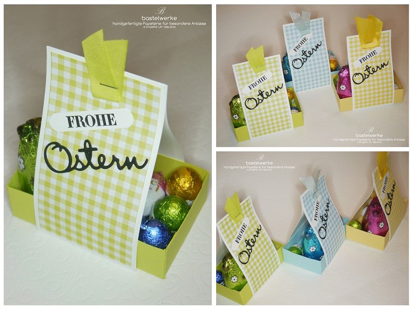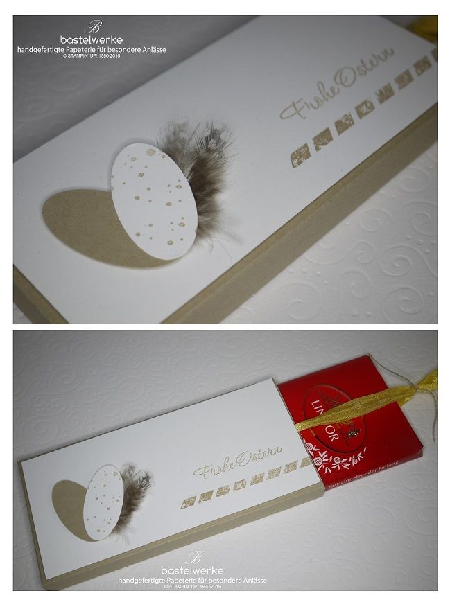 Der Faschings-Trubel hat sich nun gelegt und das nächste große Projekt steht an: die Ostervorbereitungen. Bereits zum dritten Mal darf ich einem treuen Kunden Ostergeschenke für dessen Kunden herstellen. Meinen diesjährigen Vorschlag seht ihr hier. Es handelt sich um eine Verpackung für eine Schokolade in dezenten Sandtönen. Es ist eine wundervolle Farbkombination.