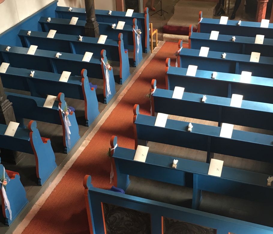 So können die Gäste zur kirchlichen Trauung empfangen werden - mit Taschentücher für die Freudentränen und Kirchenheften von Bastelwerke.